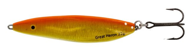 Westin Great Heron är ett bete för havsäring som de senaste åren blivit mycket populärt. Great Heron finns i flera vikter men 18 och 22 gr men är de mest använda vid fiske efter havsöring. Betet har dubbla fjäderringar och är försett med en vass trekrok från VMC. Det är tillverkat i ABS och har ett mycket fint häng i vattnet. Den fina S-formen gör att de simmar fint i vattnet. Betet finns i många fina färger och är handmålade med hög kvalité. De har även ett fint häng vid spinnstopp. Great Heron: 63 mm-18 gr och 22 gr-83 mm.