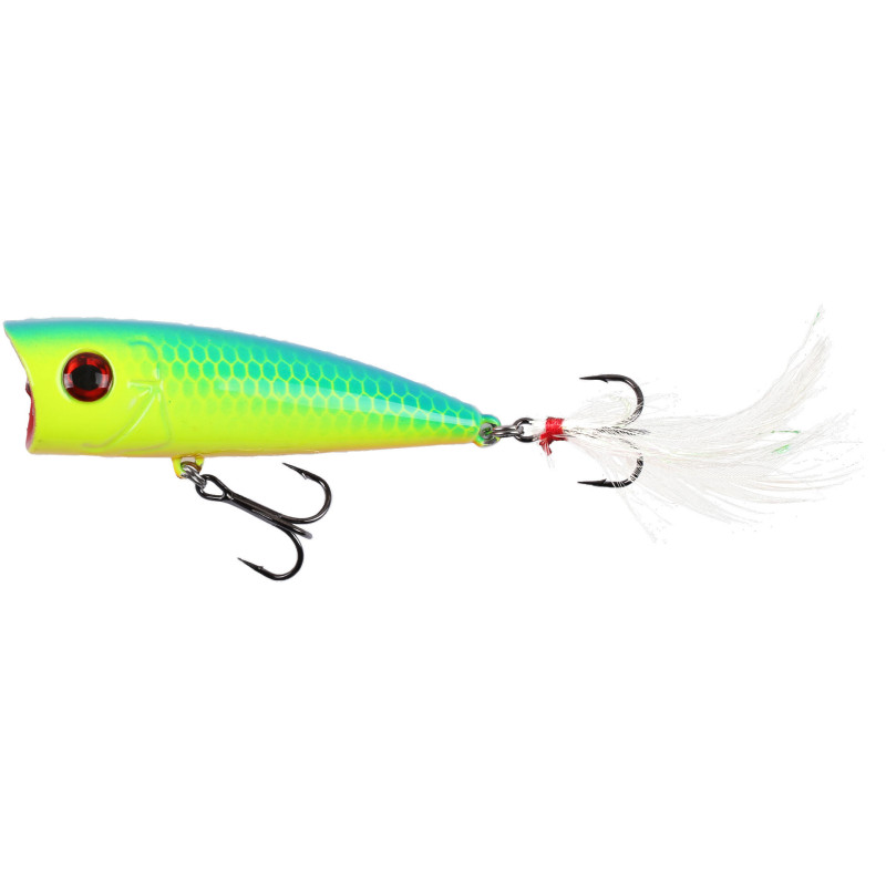 Hurricane TOP-X är en riktigt lättpoppad popper som abborren har svårt att låta bli. TOP-X är utrustad med Hurricane's 301GS trekrokar vilket säkerställer att du har starka och vassa krokar kast efter kast. Den bakre kroken är även fjäder och glitter beklädd, vilket hjälper den att hålla sig mer horisontell mellan poppandena, och agerar även som en huggpunkt för fiskarna. Vikt 8gram, längd 6cm