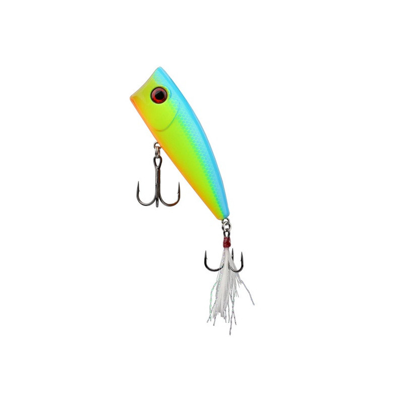 Hurricane TOP-X är en riktigt lättpoppad popper som abborren har svårt att låta bli. TOP-X är utrustad med Hurricane's 301GS trekrokar vilket säkerställer att du har starka och vassa krokar kast efter kast. Den bakre kroken är även fjäder och glitter beklädd, vilket hjälper den att hålla sig mer horisontell mellan poppandena, och agerar även som en huggpunkt för fiskarna. Vikt 8gram, längd 6cm
